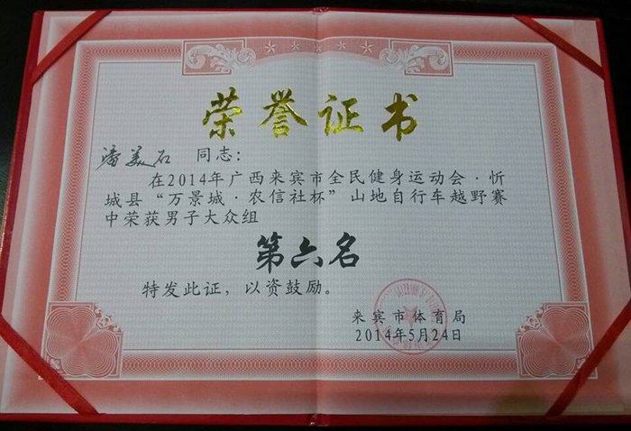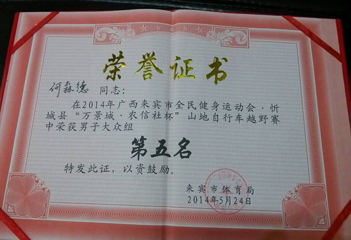 2014年5月24日“萬景城 農信社杯”山地自行車越野賽,LAPLACE車隊的何森德和潘美石分獲5、6名。