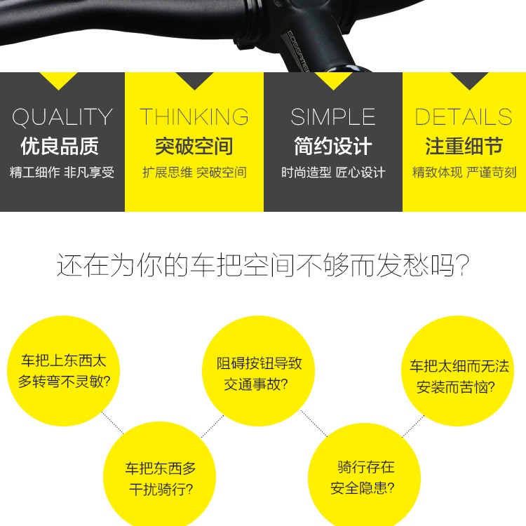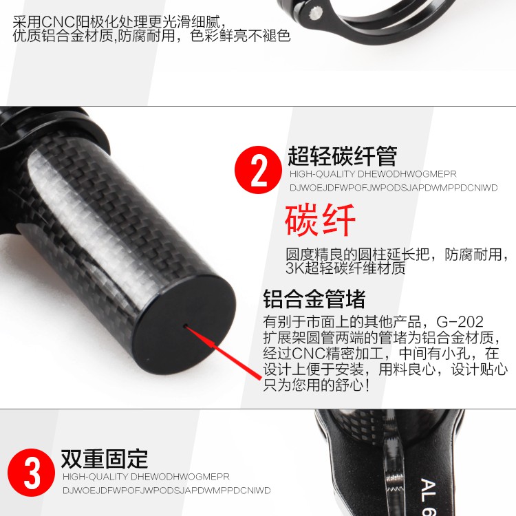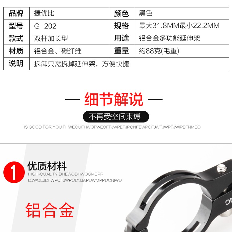 說(shuō)明:本品拆卸只需拆掉延伸架,方便快捷,加長(zhǎng)圓管(長(zhǎng)度達(dá)202mm),突破空間限制,讓您的車(chē)頭逼格更高!