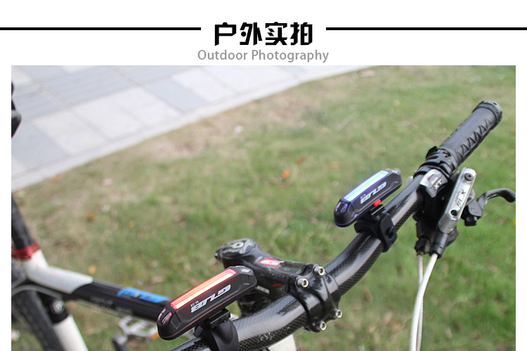 特性:LED技術(shù),COB整面發(fā)光,高亮100流明設(shè)計,實現(xiàn)整體流暢設(shè)計;配備USB接口,可循環(huán)充電;2種模式7種效果可循環(huán)切換;電池自動保護功能,電壓低于2.8V不工作;硅膠捆扎固定方式,120度方位調(diào)整,方便拆卸安裝;方型背扣設(shè)計,可橫向和縱向不同角度安裝;可安裝在坐管,下叉,車把手,前叉等。