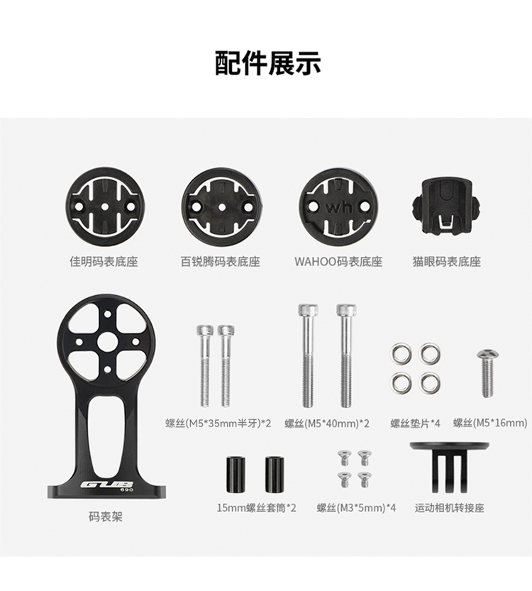 安裝在立管上,兼容佳明碼表,使用附帶的碼表接座可兼容百銳騰碼表,使用附帶的轉(zhuǎn)接頭可兼容貓眼碼表。