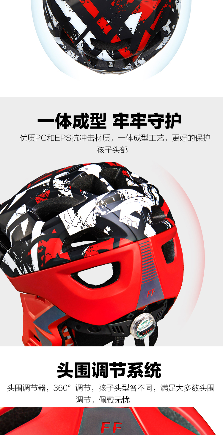 特色:全盔半盔自由切換,加長(zhǎng)帽檐貼心保護(hù)孩子的眼睛,酷炫反光標(biāo)涂裝讓騎行更酷更有樂(lè)趣,同時(shí)頭圍調(diào)節(jié)系統(tǒng)自帶的尾燈起到警示作用,讓孩子的夜騎更安全。