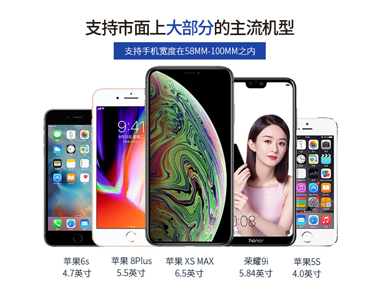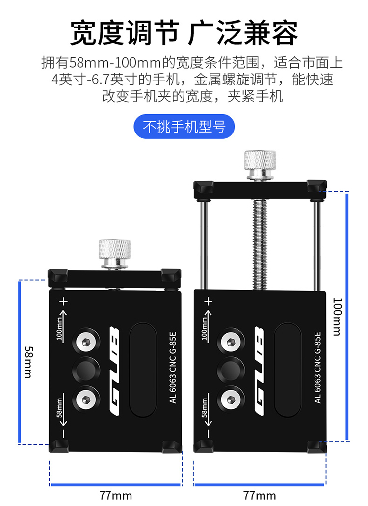 夾持范圍:58-100mm(4-6.7寸手機)