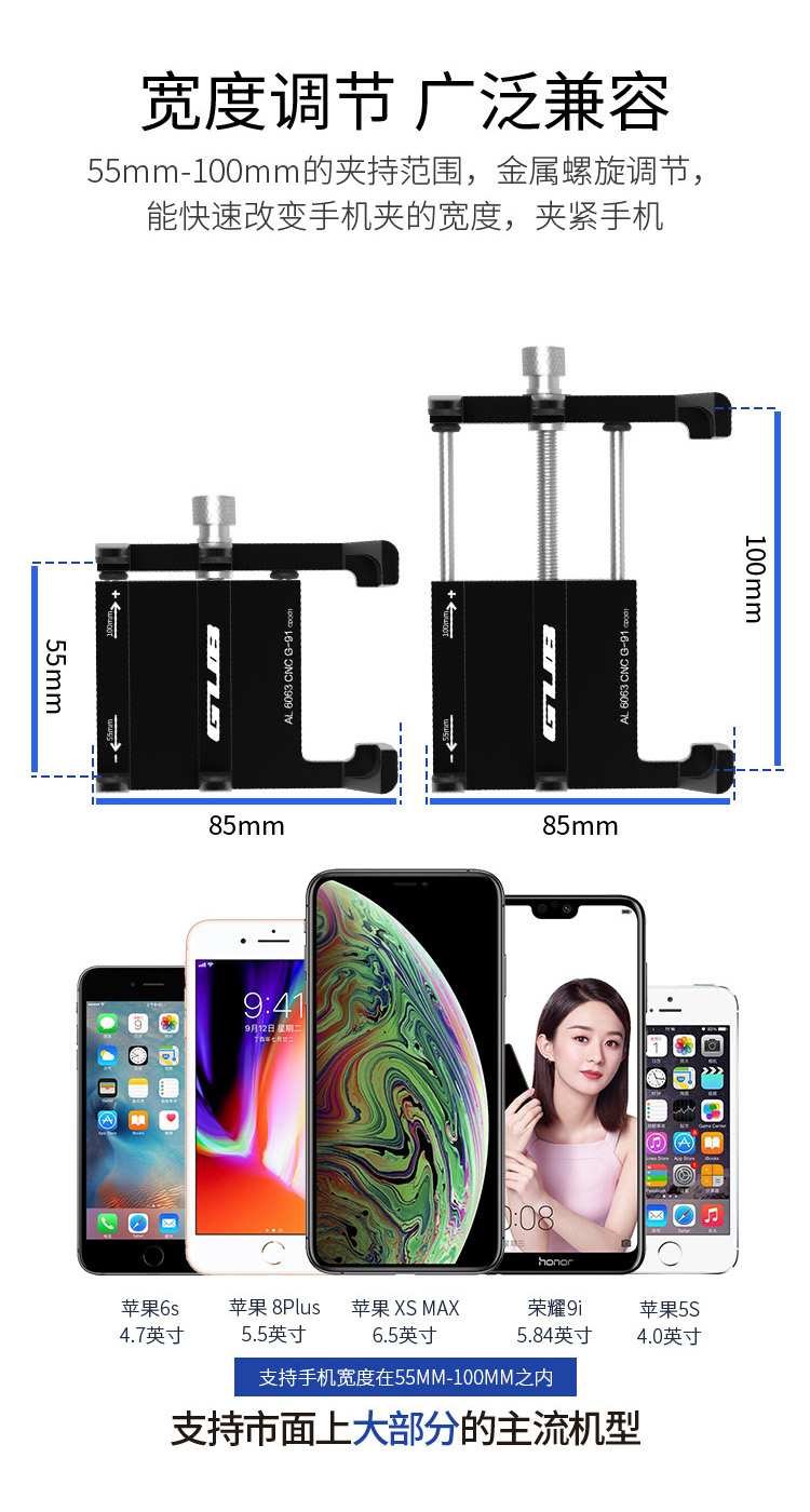 規(guī)格:支持55-100mm寬的手機(jī)