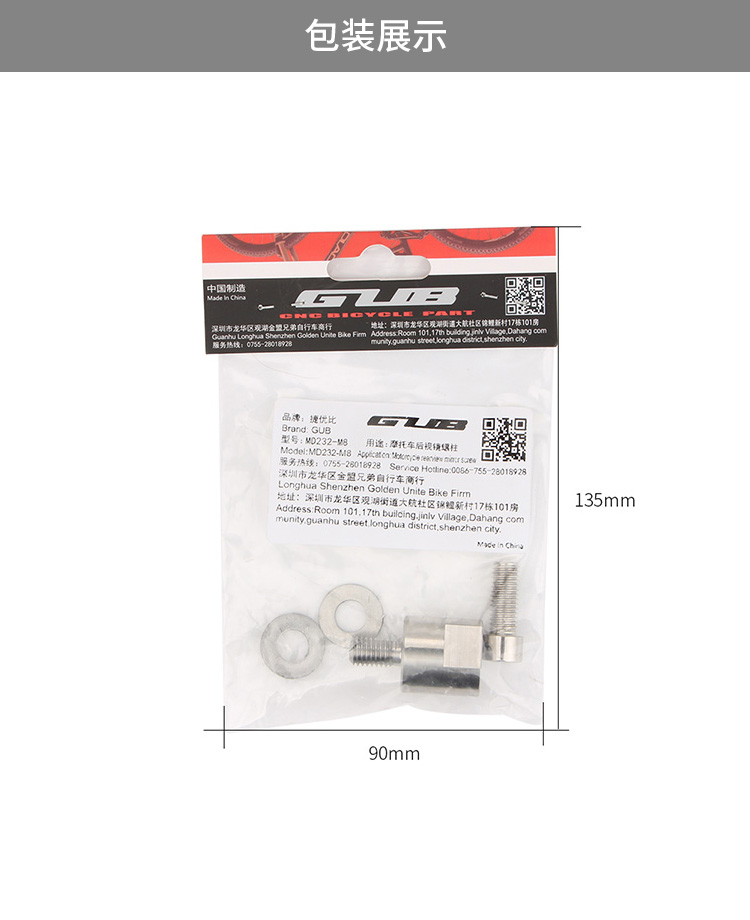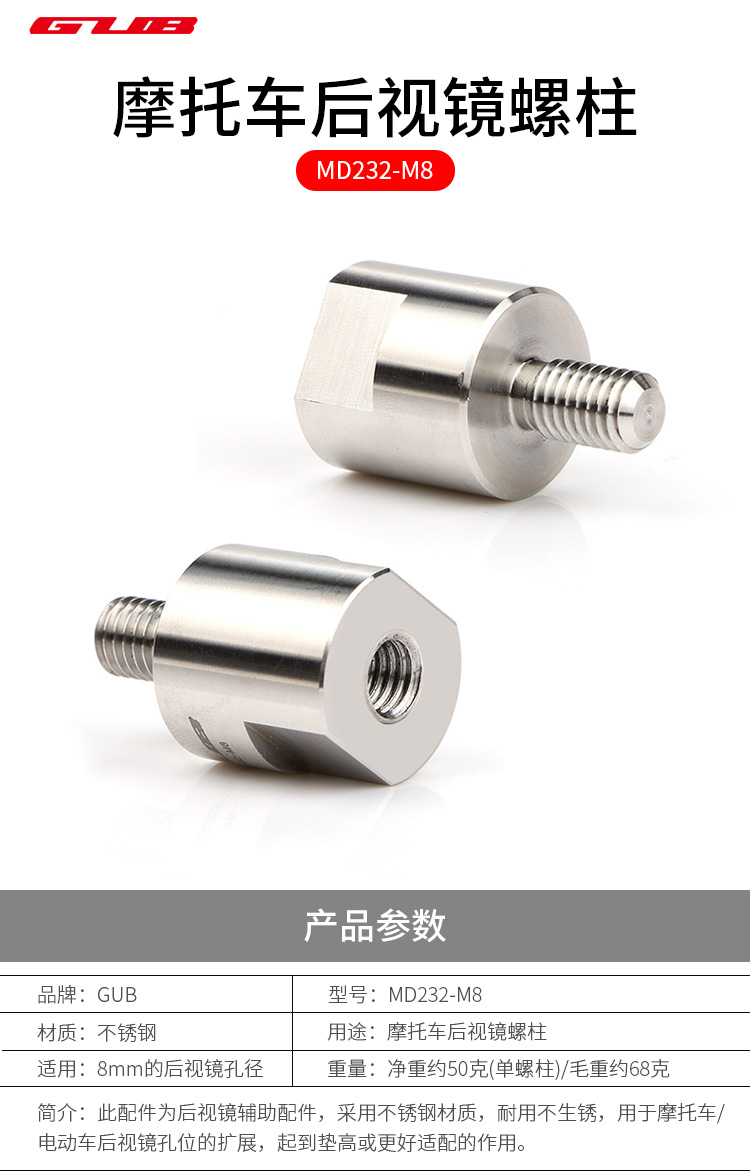 產(chǎn)品:GUB MD232-M8 摩托車后視鏡螺柱