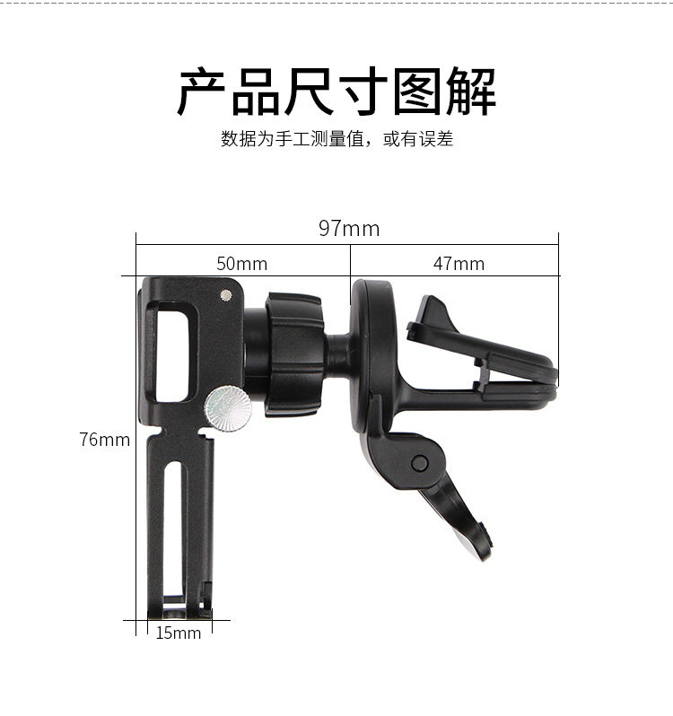 特點(diǎn):鋁合金架體+PC固定組件,55-100mm寬度的手機(jī)均可使用,萬向球+可旋轉(zhuǎn)夾口讓使用更加隨心所欲!