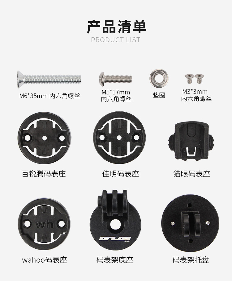 配置:配wahoo、佳明、百銳騰和貓眼碼表接座,兼容多種碼表,可調(diào)角度設(shè)計