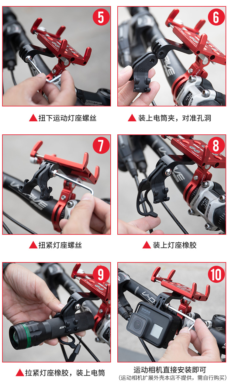 特點(diǎn):鋁合金架體,高兼容性不挑手機(jī)型號(hào),自行車、電動(dòng)車等都可使用。標(biāo)配電筒支架配件,豐富擴(kuò)展性能,讓你騎行無(wú)憂!