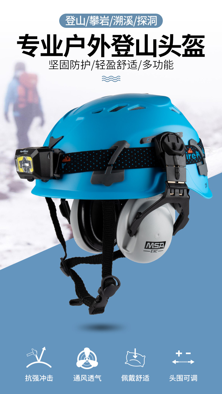 特色:簡約大方的外觀設(shè)計,PP+EPS高強(qiáng)度外殼不懼強(qiáng)烈沖擊,貼心半包邊內(nèi)襯佩帶舒適,自帶頭燈卡扣,支持加裝頭燈。帶耳罩插口,可加裝防噪耳罩。