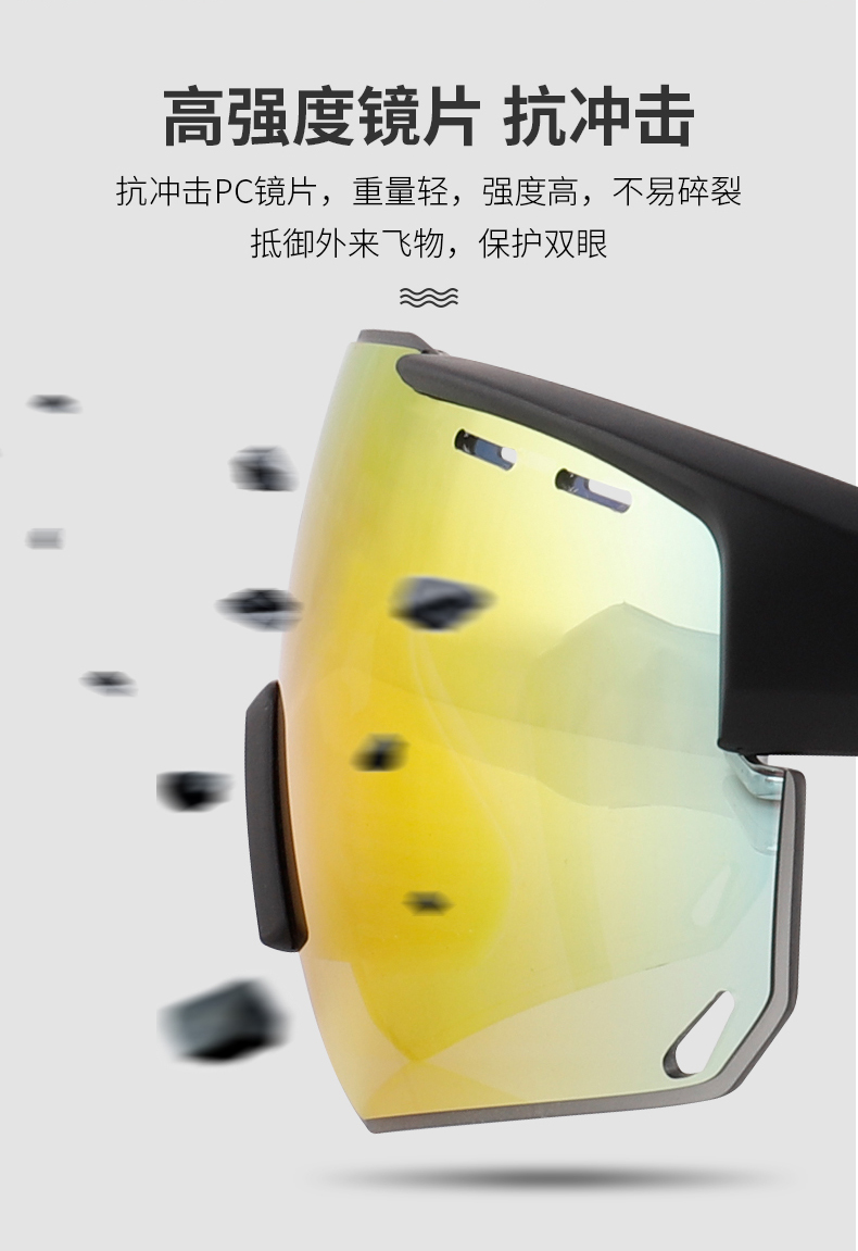 材質(zhì):PC鏡框和鏡腳、PC鏡片、TPE鼻托