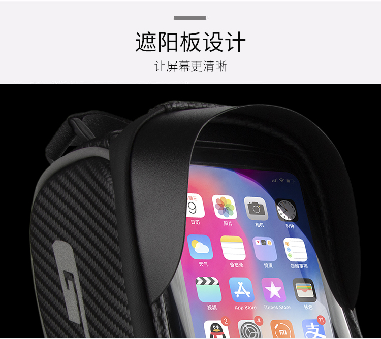 特點(diǎn):簡(jiǎn)約設(shè)計(jì),采用質(zhì)感良好的滌綸草席料,TPU大面積觸摸區(qū),耳機(jī)孔設(shè)計(jì),標(biāo)配遮陽(yáng)板,一包在手騎行無(wú)憂。