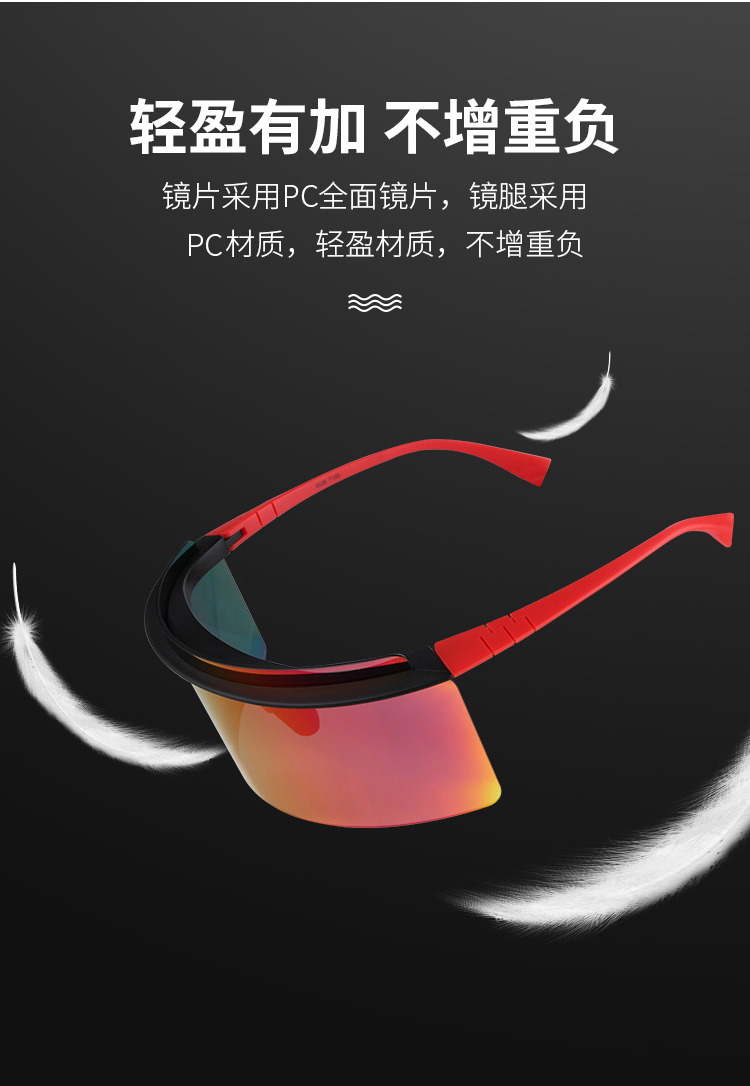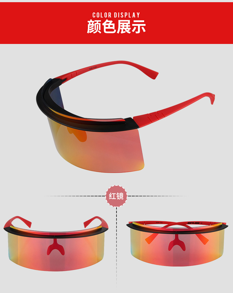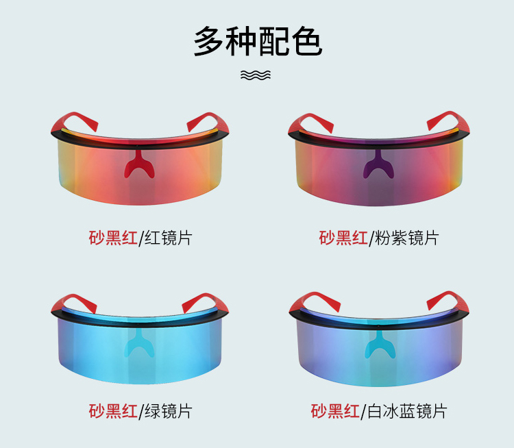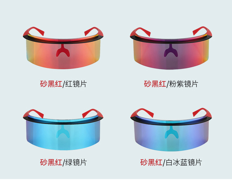 顏色:黑砂紅/紅鏡片、黑砂紅/白冰藍(lán)鏡片、黑砂紅/粉紫鏡片、黑砂紅/綠鏡片