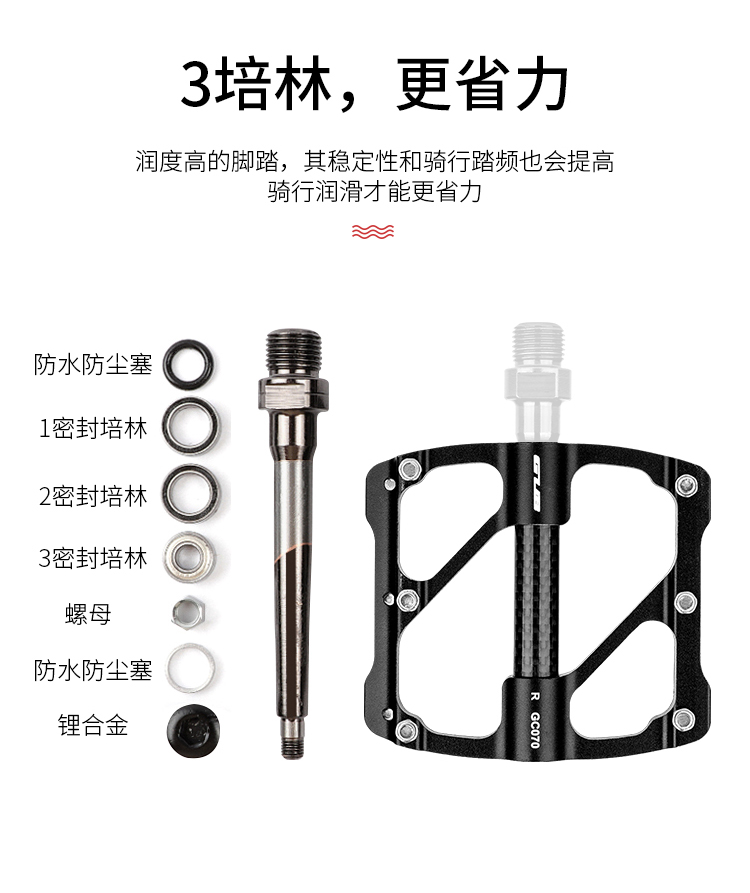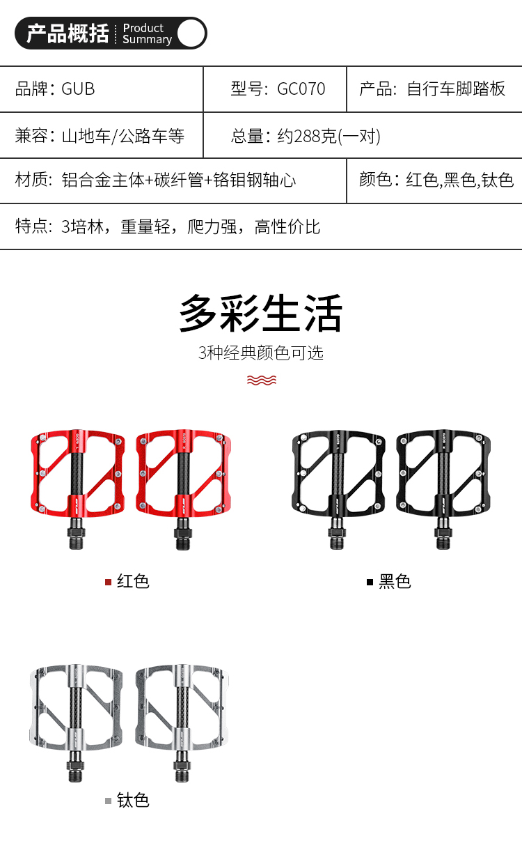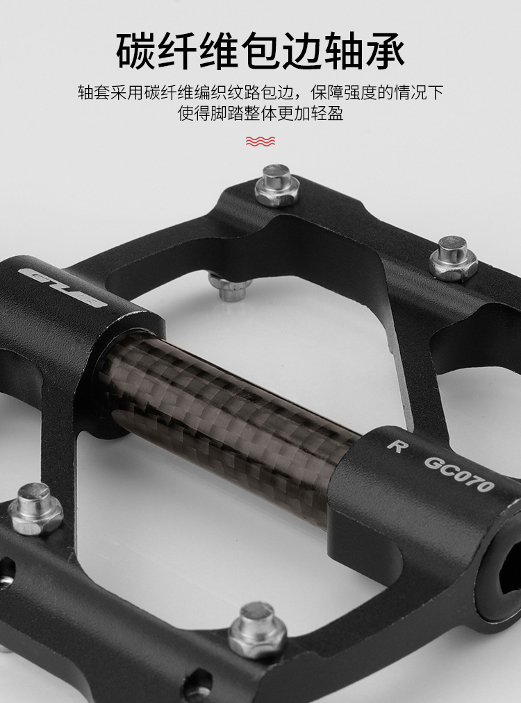 材質(zhì):鋁合金腳踏主體+碳纖維軸套+鉻鉬鋼軸心