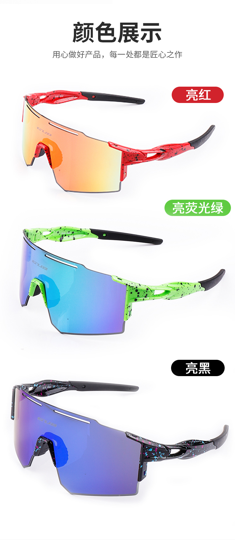 顏色:亮熒光綠/真綠鏡片、亮紅/真黑紅鏡片、亮黑/真蘭鏡片