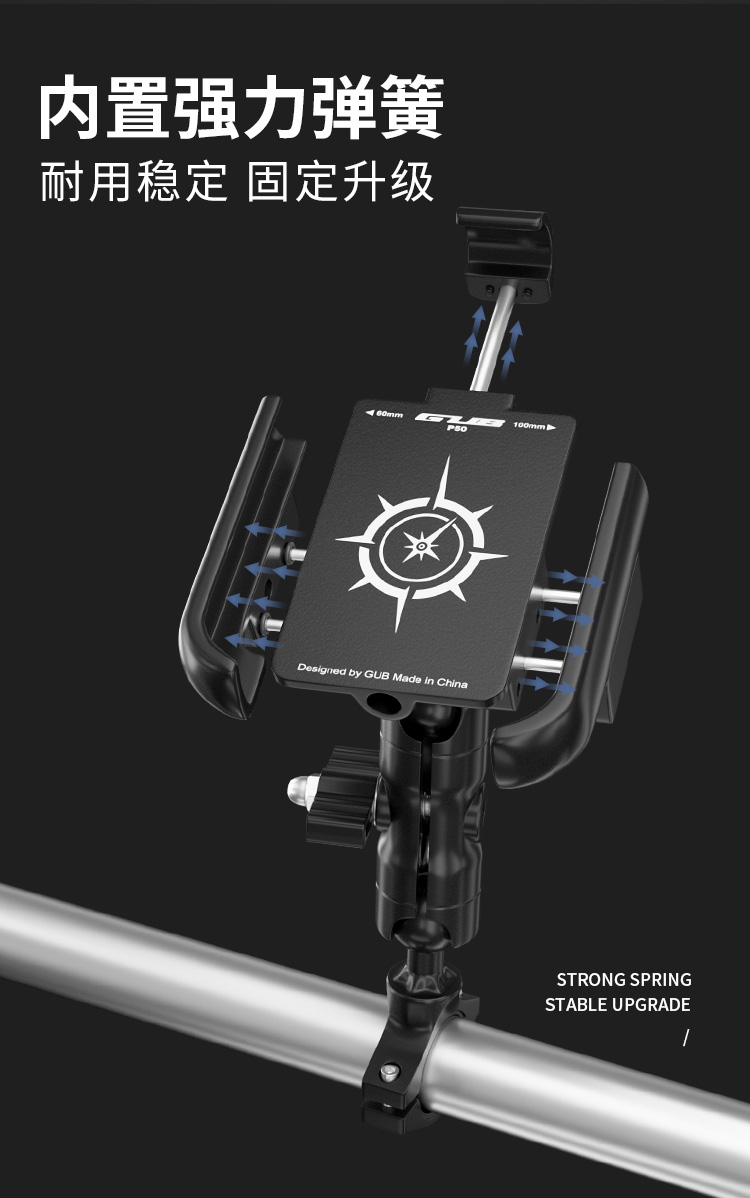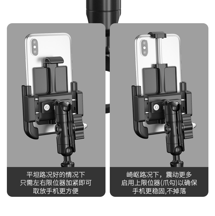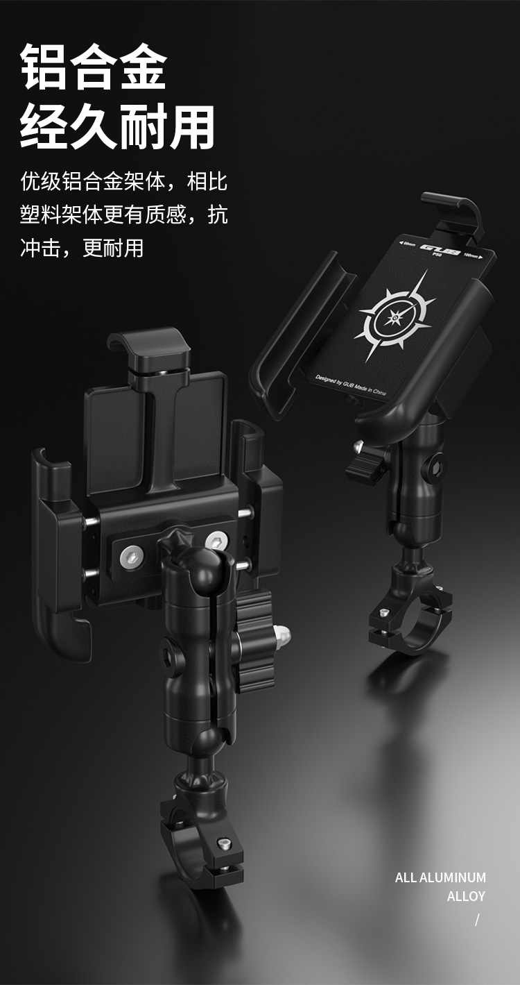 特點:鋁合金架體,高兼容性不挑手機型號,摩托車、電動車等都可使用,四面環(huán)繞固定,夾手機更牢固,快速取放省時省力,雙萬向球旋轉(zhuǎn)系統(tǒng),滿足多場景使用需求。