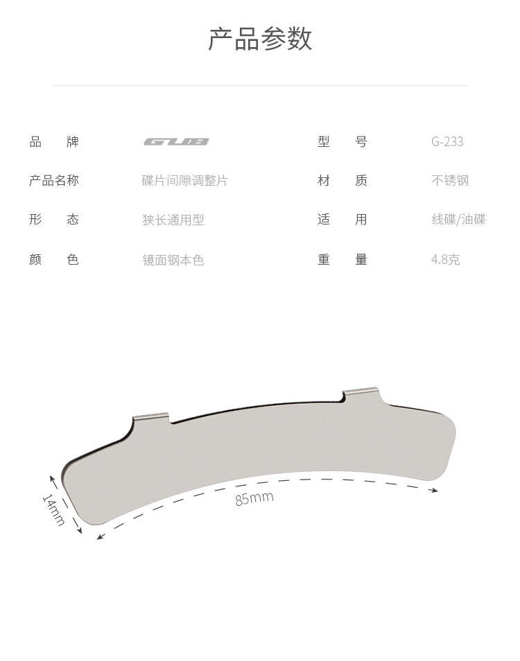 名稱:GUB G-233 碟片間隙調(diào)整片 材質(zhì):不銹鋼 適用:線碟/油碟 重量:凈重4.8克/毛重8克 統(tǒng)一零售價:5元