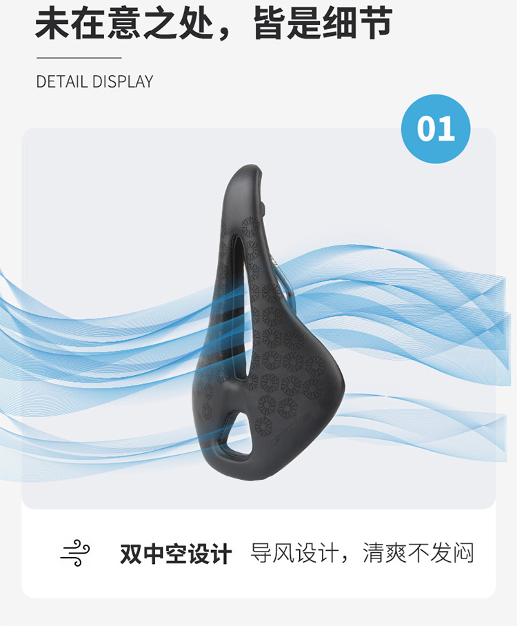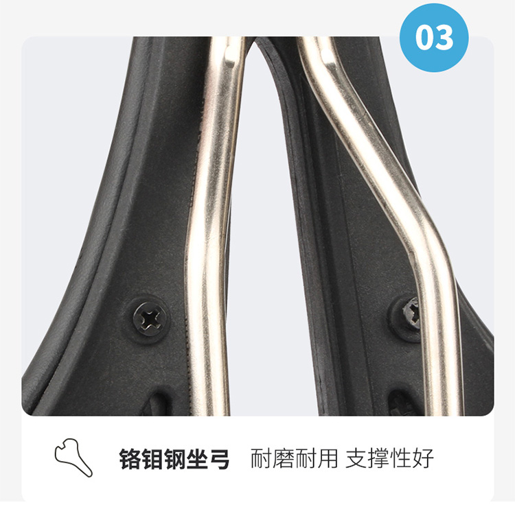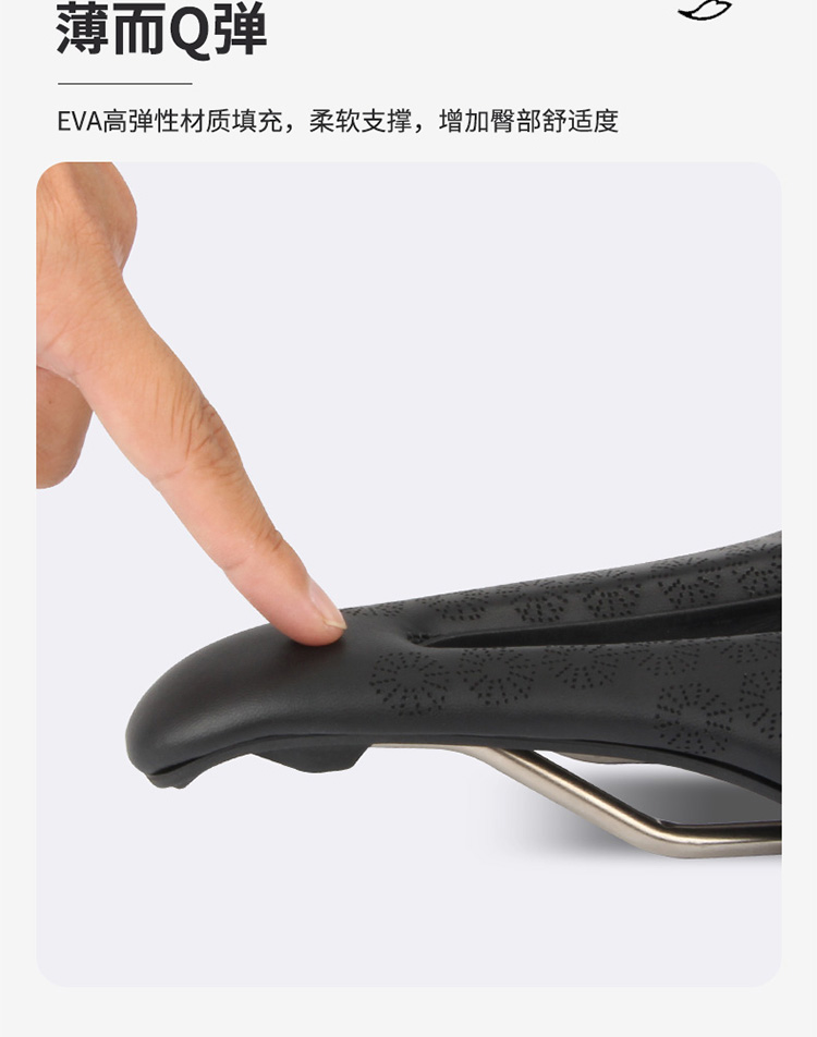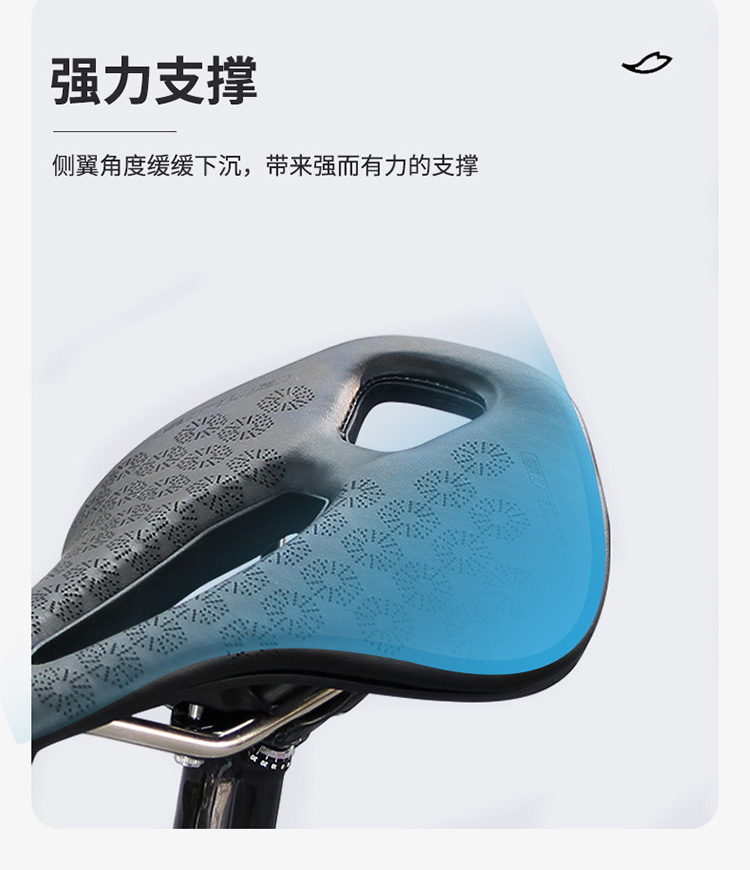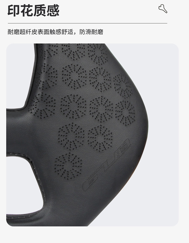 特色:超纖皮表面耐磨有質(zhì)感;鉻鉬鋼中空軌道強度高;坐墊中央設空槽,不悶熱、低壓迫
