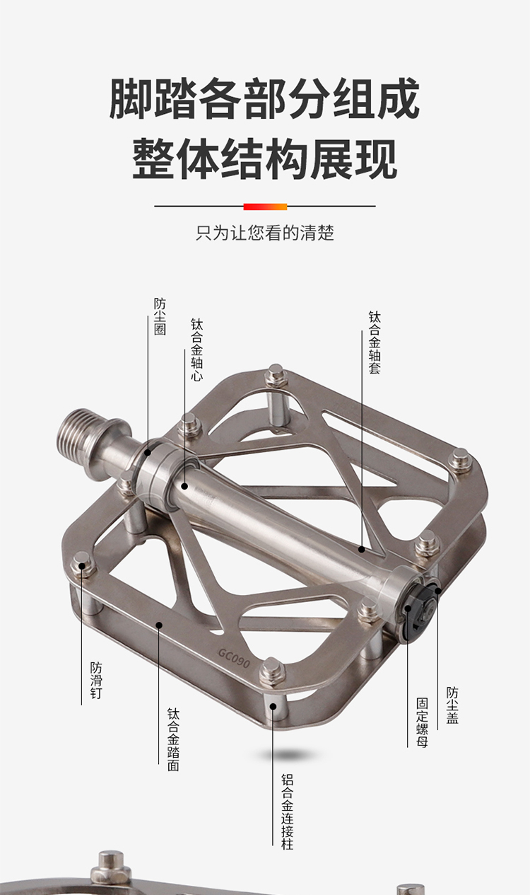 材質(zhì):鈦合金踏板+鈦合金軸套+鈦合金軸心