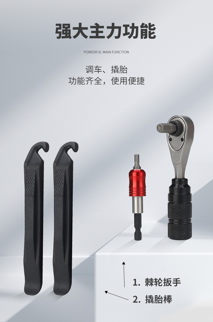 包含工具:手柄、棘輪扳手、連接桿、撬胎棒、批頭
