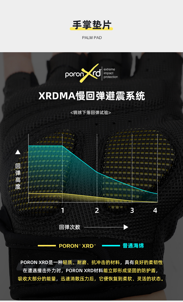 材質:高彈萊卡方格面料、進口PORON XRD 緩沖掌墊、掌心采用韓國進口PU、韓國Aerosilver抗菌面料(擦汗布)