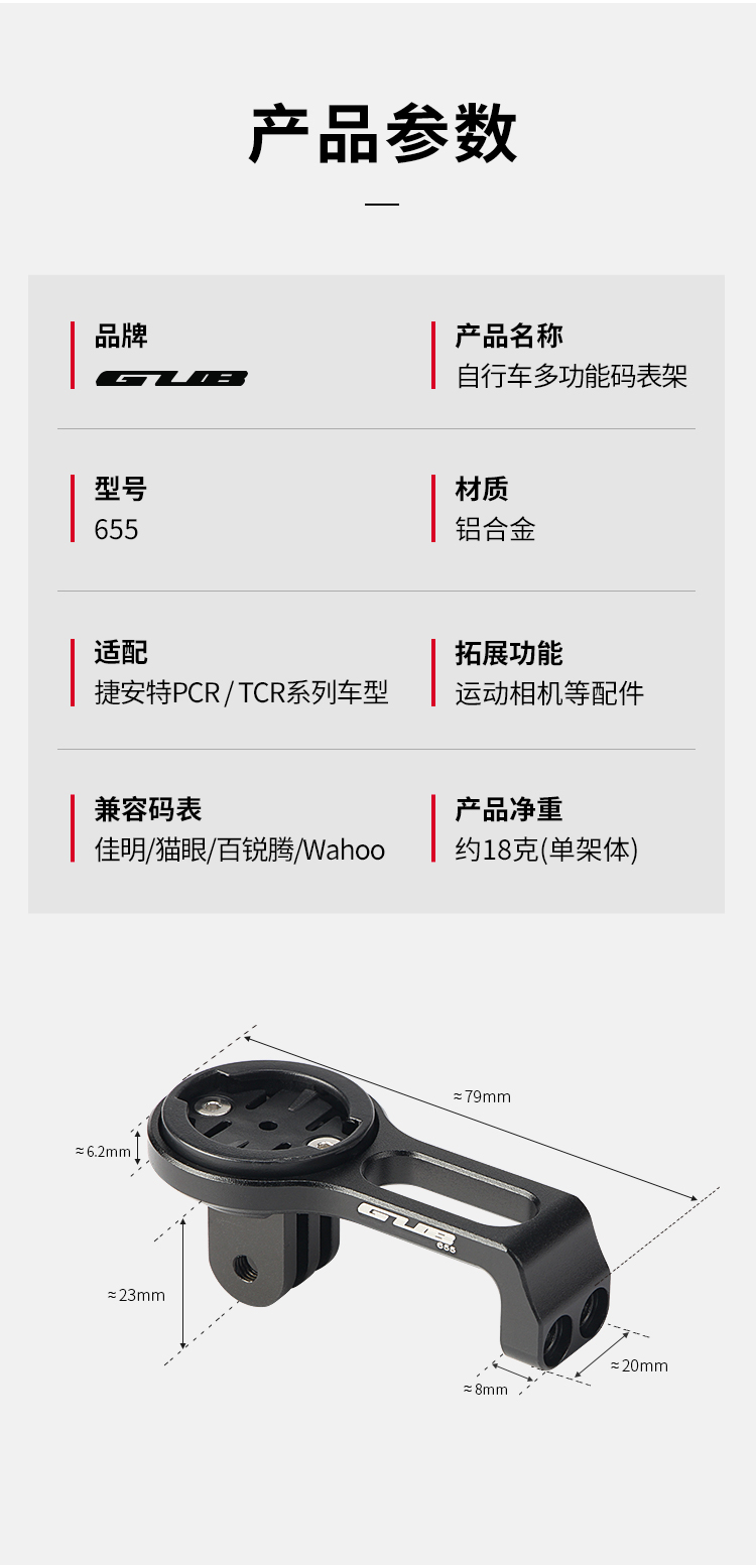 產(chǎn)品:GUB 655 多功能鋁合金碼表架