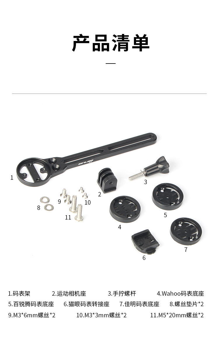配置:配運動相機轉(zhuǎn)接座,wahoo、佳明、百銳騰和貓眼碼表接座