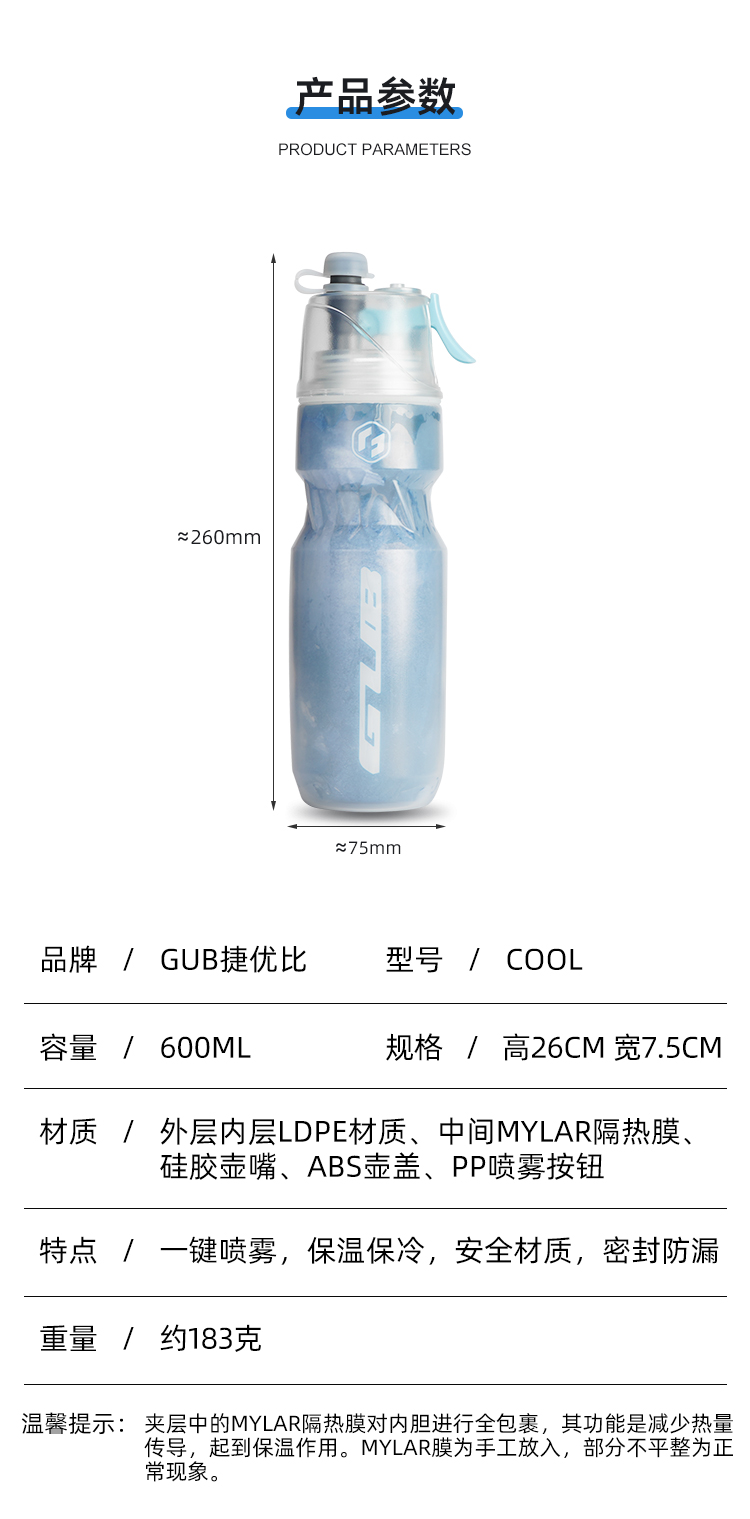 名稱:GUB COOL 噴霧運(yùn)動(dòng)水壺